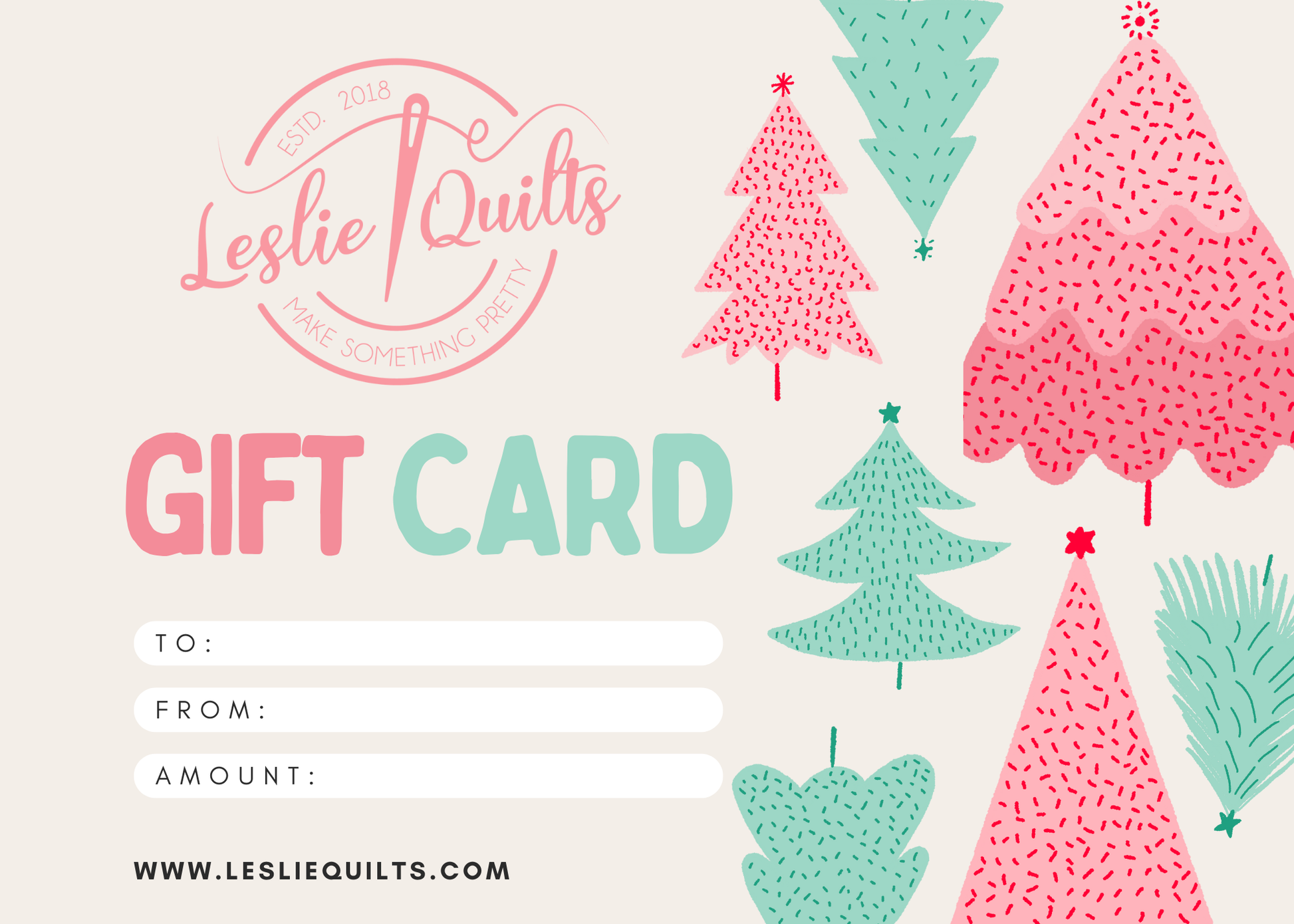 This gift card is exclusively for longarm quilting labor and batting/thread costs associated with the service at Leslie Quilts. It cannot be used for physical merchandise.